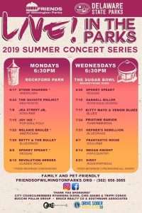 Support local music while enjoying Wilmington parks! Thanks to the Friends of Wilmington Parks along with Delaware State Parks, residents can enjoy the “LIVE! IN THE PARKS: 2019 SUMMER CONCERT SERIES!” This summer event kicks off June 24 and ends on August 21. Shows will alternate between Rockford and Brandywine Parks. B6JRNP